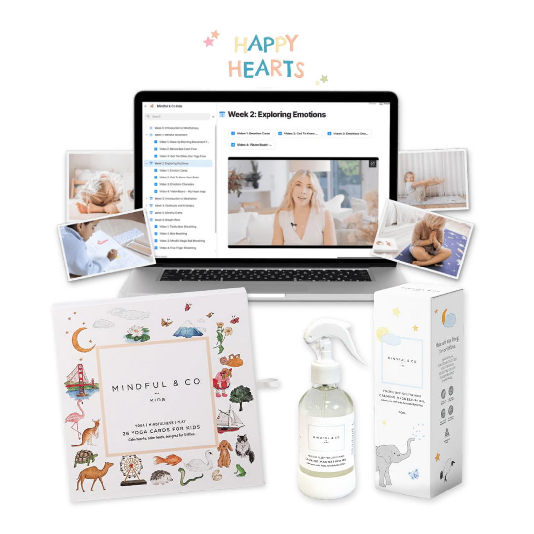 Combines the soothing Magnesium Calming Soak, engaging Mindful Flash Cards, and Happy Hearts Course for a holistic routine.